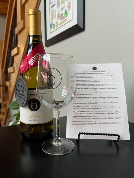 This 2022 dry, estate grown Chardonnay is named after our nephew's wife, Steffi. The wine was fermented and aged in stainless steel and expresses mild tannins, subtle fruits, including apple, melon, and citrus, and a clean finish. This wine is easy to drink and enjoy with or without food. Pair with shellfish, soft cheeses...yum. Silver medal in the 2024 Loudoun Wine Awards.